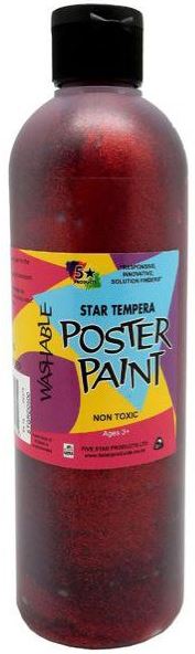 5 STAR TEMPERA POSTER PAINT WASHABLE BOTTLE 500ML GLITTER RED
