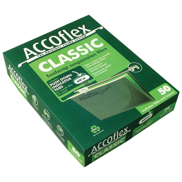 ACCOFLEX CLASSIC SUSPENSION FILE FOOLSCAP GREEN BOX 50