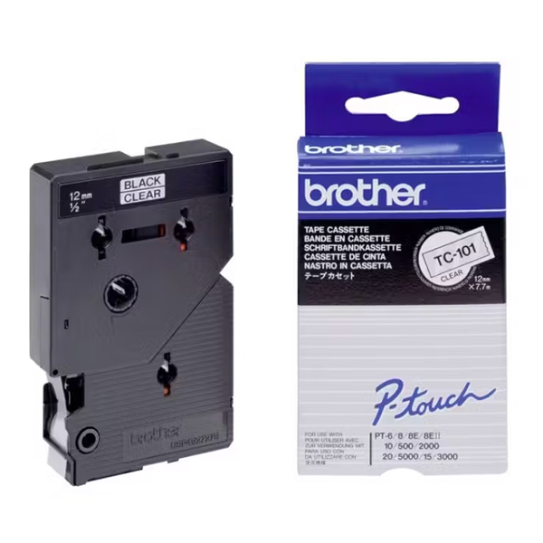 BROTHER TZE121 LABEL TAPE LAMINATED W9MM X L8M BLACK ON CLEAR