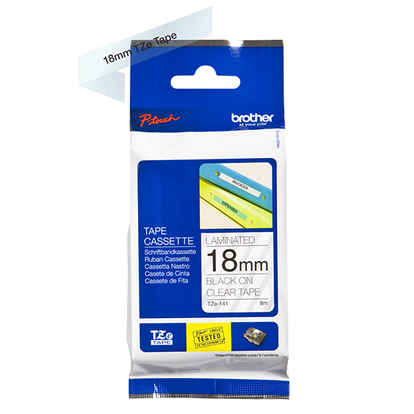 BROTHER TZE-141 LAMINATED LABELLING TAPE 18MM BLACK ON CLEAR