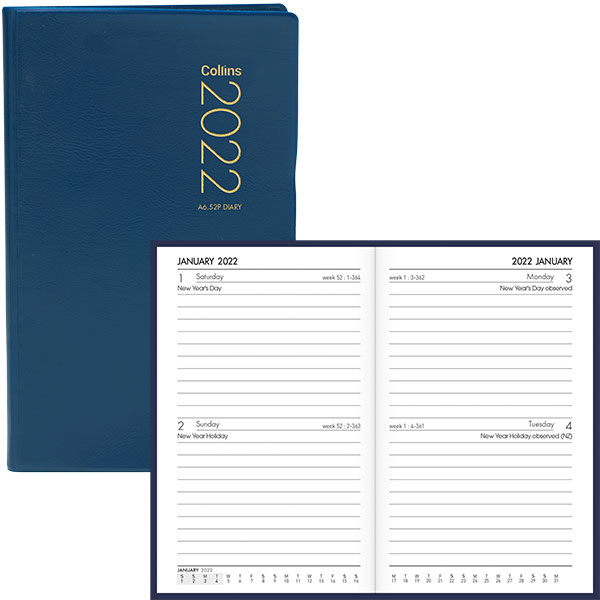 COLLINS DIARY POCKET A6.52P W72 X L122MM NAVY 2 DAYS PER PAGE EVEN YEAR