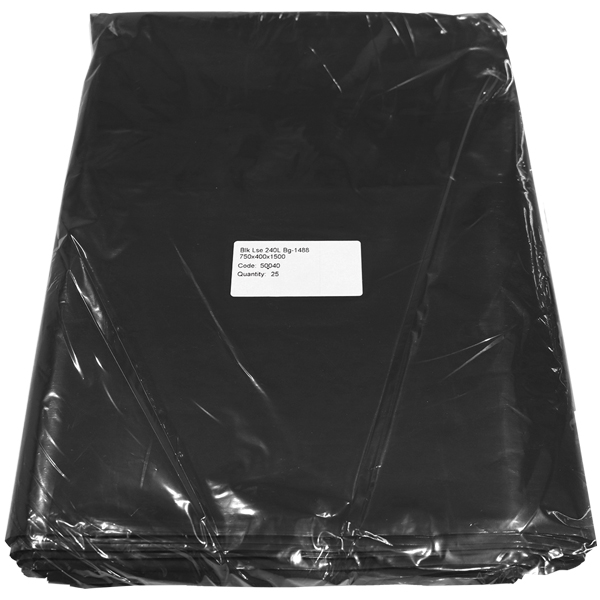 COVERIS RUBBISH BAG 240L W750 X H1500MM BLACK PACK 25