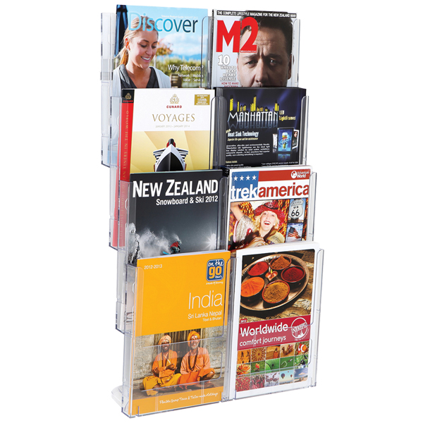 DEFLECTO LIT LOC BROCHURE HOLDER A4 4 TIER 8 COMPARTMENTS WALL MOUNT CLEAR