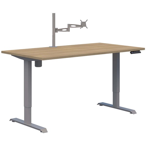 DUO II ELECTRIC DESK W1200 X D700 X H695-1145MM SILVER FRAME CLASSIC OAK WITH METALICON SINGLE MONITOR ARM SILVER