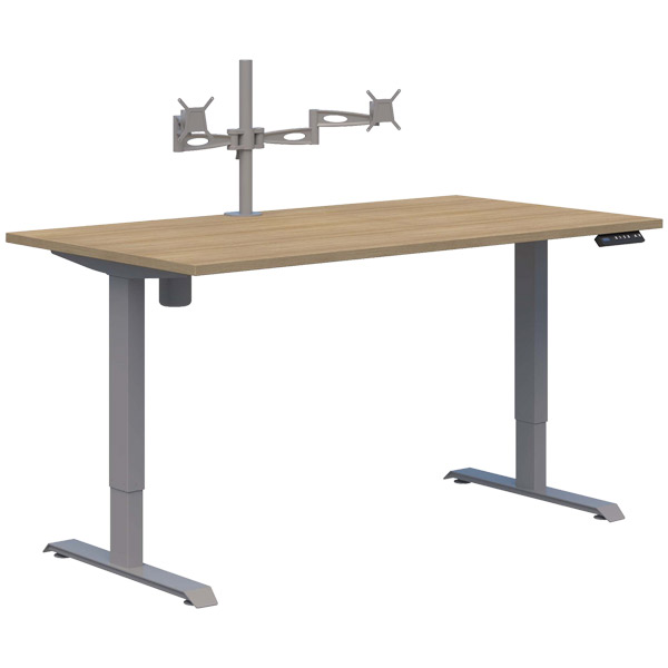 DUO II ELECTRIC DESK W1500 X D800 X H695-1145MM SILVER FRAME CLASSIC OAK WITH METALICON DOUBLE MONITOR ARM SILVER