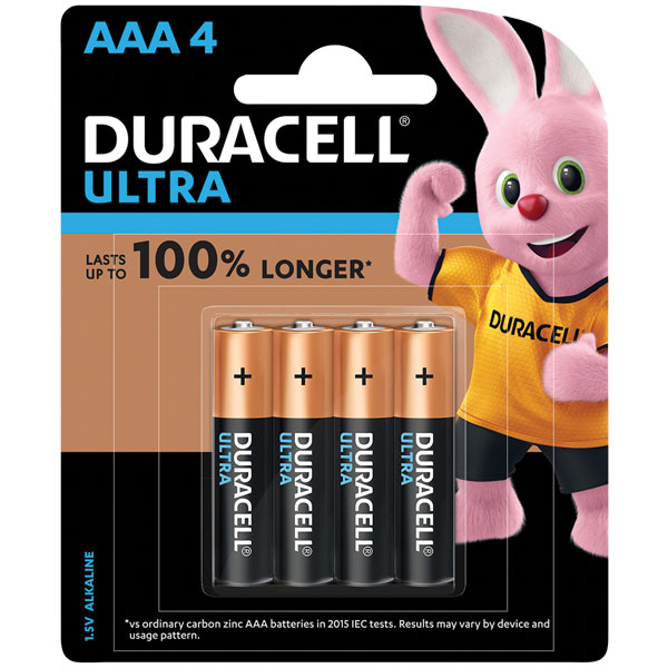 DURACELL ULTRA BATTERY ALKALINE MX-2400 SIZE AAA PACK 4