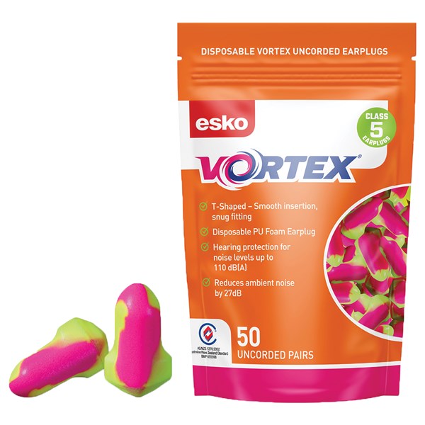 ESKO VORTEX EARPLUGS T-SHAPED UNCORDED PACK 50