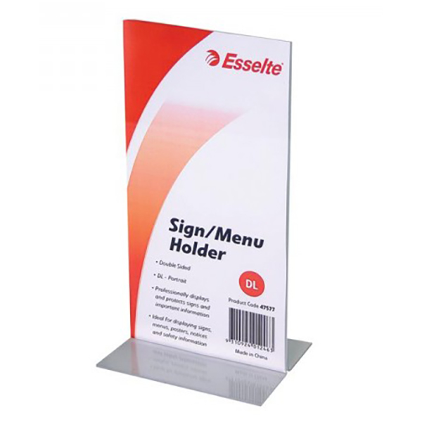 ESSELTE SIGN / MENU HOLDER DOUBLE SIDED PORTRAIT DL CLEAR