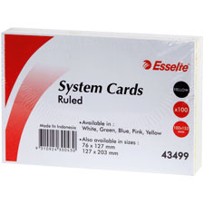 ESSELTE SYSTEM CARDS RULED 152 X 102MM PACK 100 YELLOW
