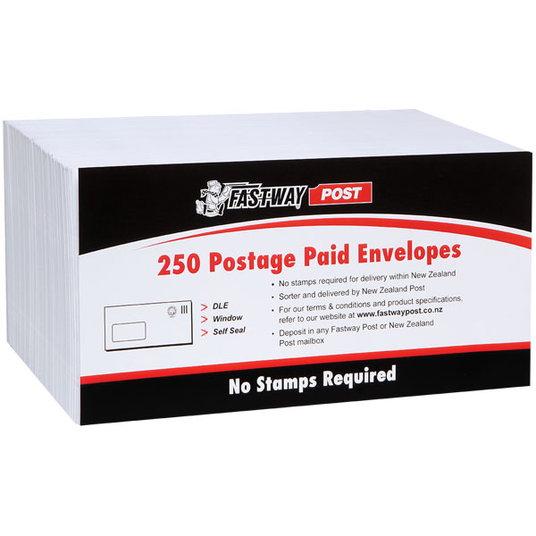 FASTWAY POST ENVELOPE POSTAGE INCLUDED PLAIN SELF SEAL 9S E13 W165 X L92MM WHITE PACK 250