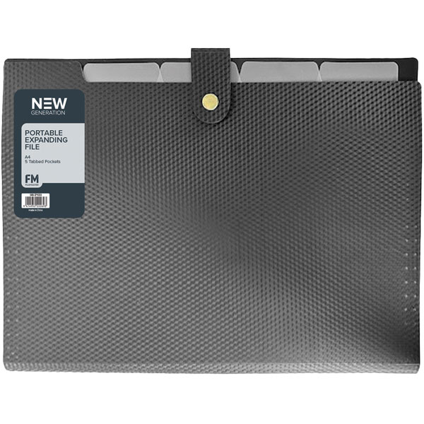 FM PORTABLE EXPANDING FILE A4 5 POCKET GUNMETAL BLACK