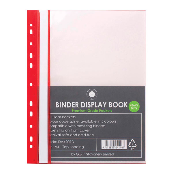 GBP BINDER DISPLAY BOOK 20 POCKET A4 RED
