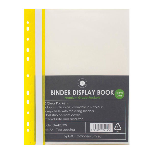 GBP BINDER DISPLAY BOOK 20 POCKET A4 YELLOW