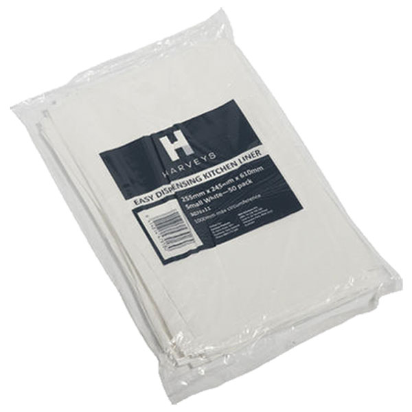 HARVEYS RUBBISH BAG 14MU W230 X H220 X D510MM WHITE PACK 50