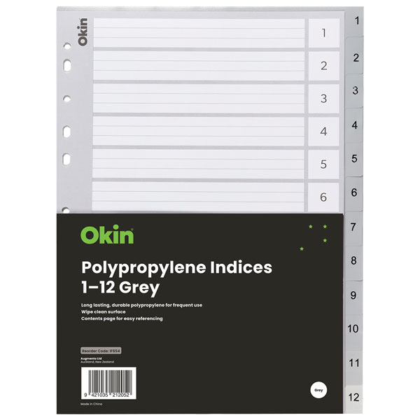 OKIN PP INDICES 1-10 TABS A4 GREY