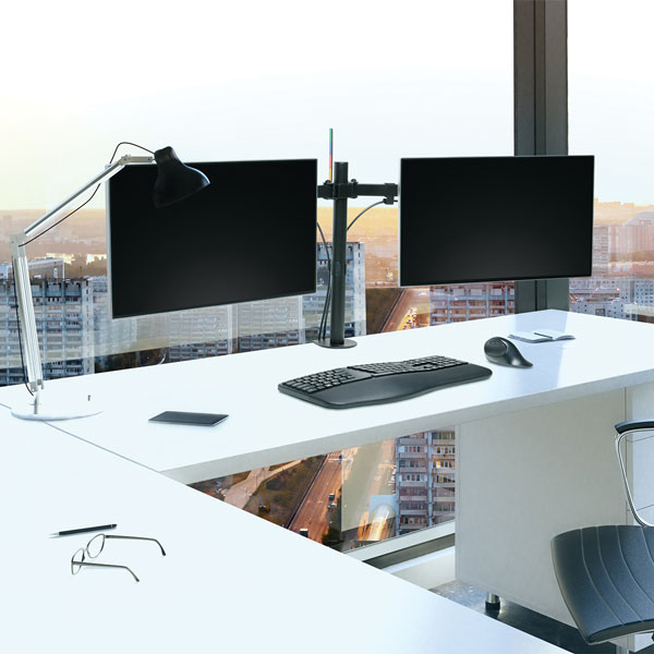 Finding the correct ergonomic height for your monitors and adjusting their distance is easy, thanks to the sturdy, stable SmartFit Ergo Dual Extended Monitor Arm