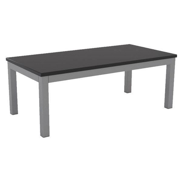 KNIGHT CUBIT COFFEE TABLE W1200 X D600 X H450MM SILVER FRAME BLACK TOP