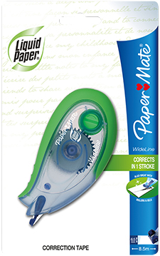 Liquid wideline correction tape is ergonomically designed with wrap around grip for easy gripping and application