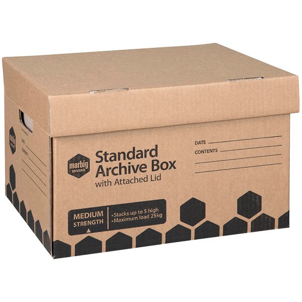 MARBIG ENVIRO ARCHIVE BOX ATTACHED LID W315 X H260 X L420MM