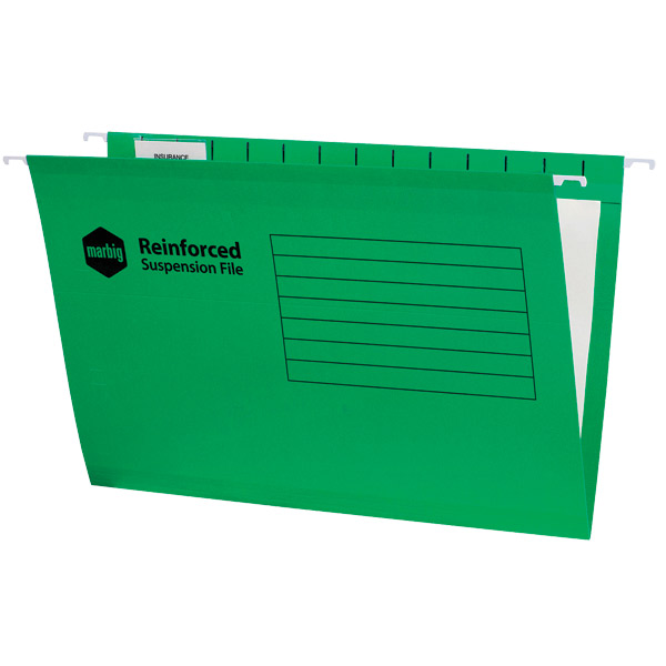 The Marbig suspension files come complete with tabs and inserts and are also available in a variety of colours