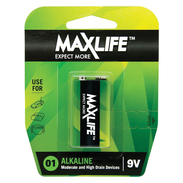 MAXLIFE BATTERY ALKALINE 9 VOLT