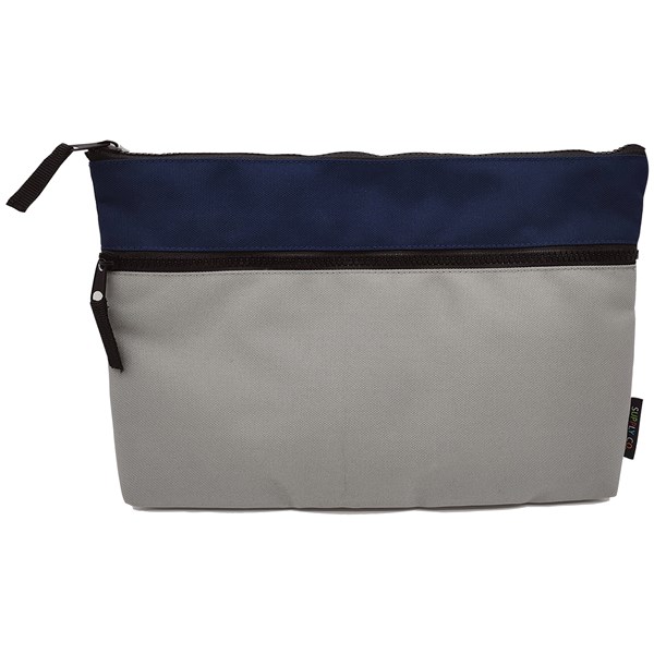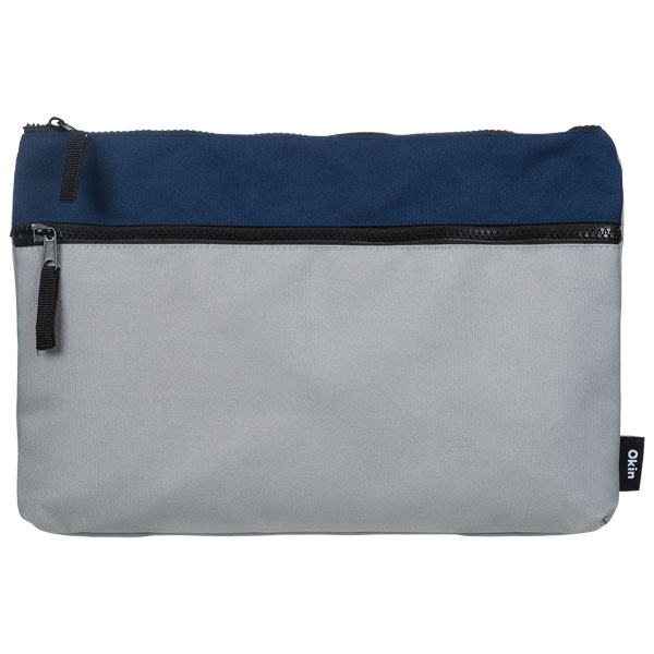 OKIN PENCIL CASE 2 ZIP 340 X 230 X 25MM BLUE AND GREY