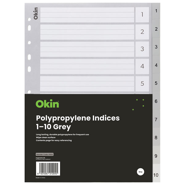 Okin Polypropylene Indices are made from lightweight yet strong plastic that will not tear or break.
