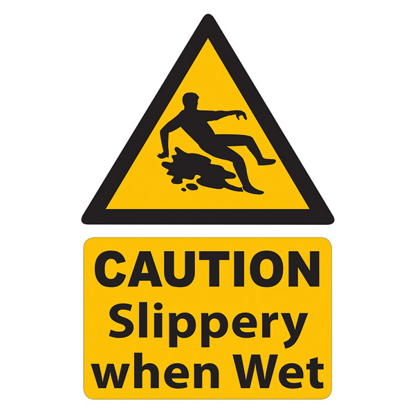 QSI SAFETY SIGN W240 X L340MM CAUTION SLIPPERY WHEN WET