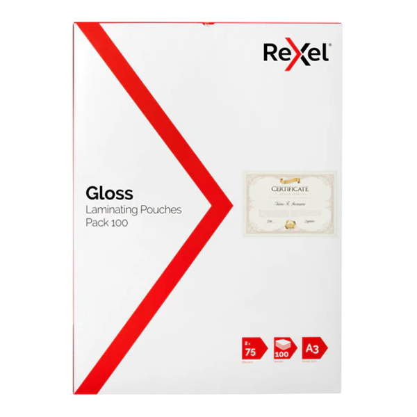 REXEL LAMINATING POUCH 75 MICRON A3 CLEAR PACK 100