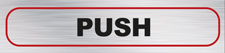 Horizontal sign reads Push