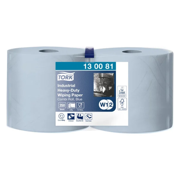 TORK 130081 W1 WIPING PAPER INDUSTRIAL HEAVY DUTY 3 PLY W235MM X L119M BLUE CTN 2