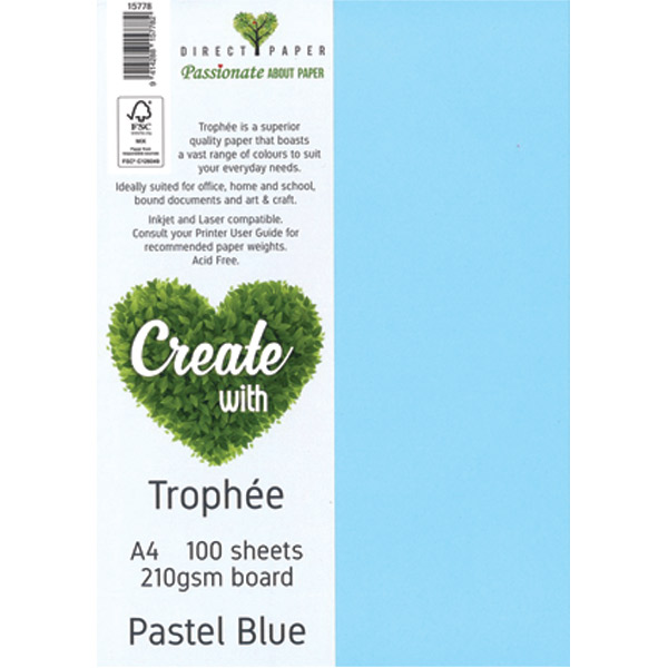 TROPHEE COLOURED PAPER A4 210GSM PASTEL BLUE PACK 100