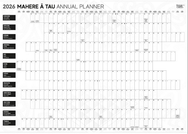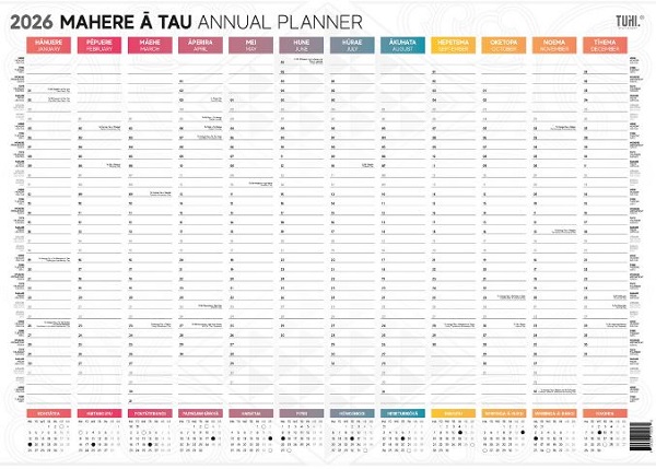 TUHI WALL PLANNER BILINGUAL ENGLISH MAORI LARGE L700 X W990MM 2026