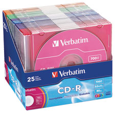 VERBATIM 94611 CD-R 700MB 52X SLIM CASE COLOURED PACK 25