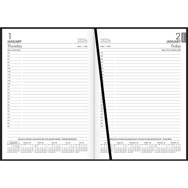 MILFORD DIARY BOSTON PLUS A51 BLACK DAY PER PAGE WIRO EVEN YEAR