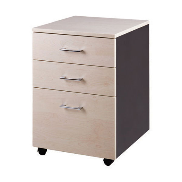 ZEALAND MOBILE 2 DRAWER 1 FILE LOCKABLE W465 X D500 X H660MM CARBON AND WASHED MAPLE